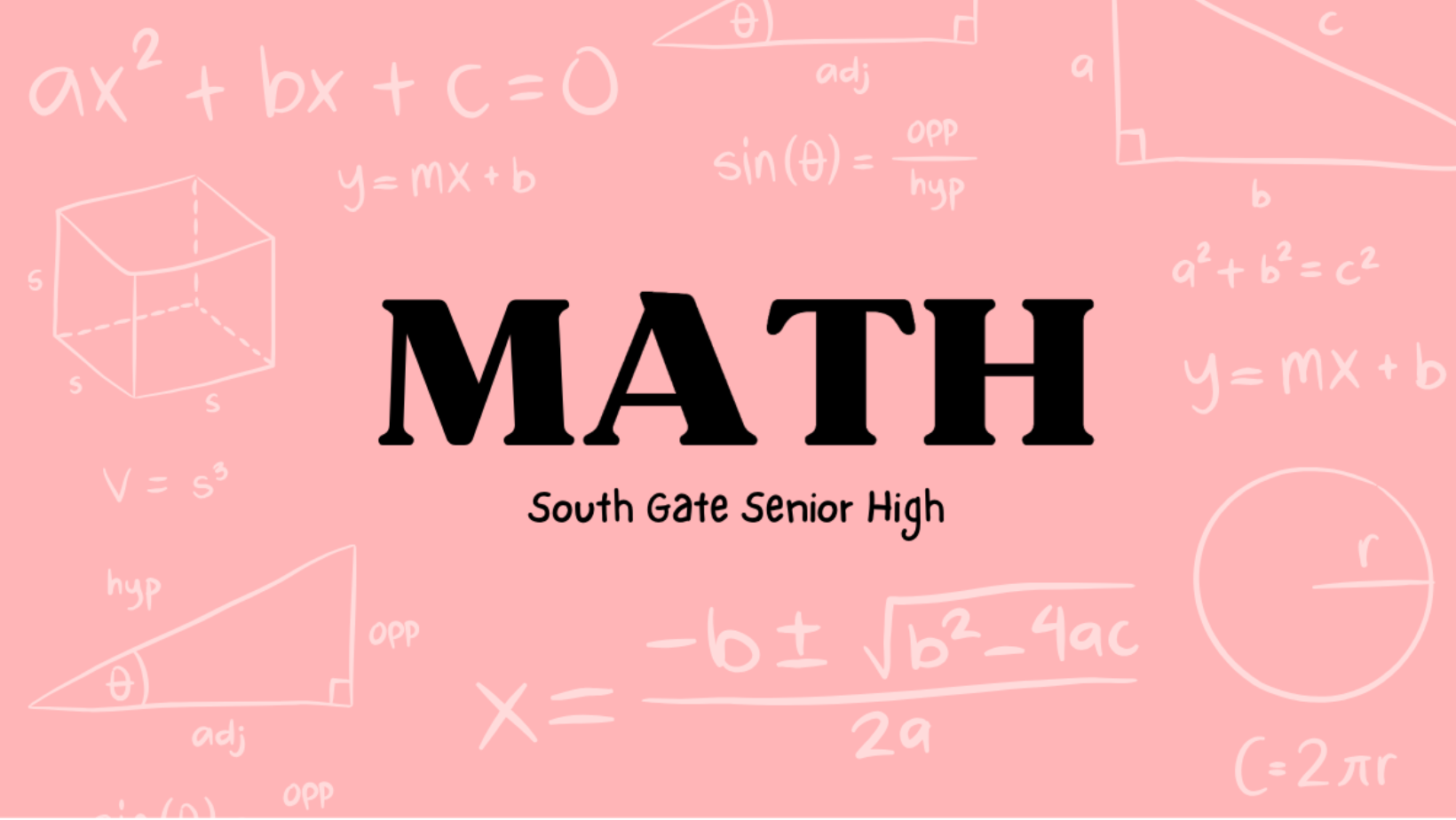 At South Gate High School, our Mathematics Department is dedicated to helping every student develop strong problem-solving skills, logical reasoning, and a deep understanding of mathematical concepts. We offer a range of courses from foundational math to advanced placement and college preparatory classes, ensuring that all students are challenged and supported at their level. Our teachers are committed to making math engaging, relevant, and accessible through hands-on learning, collaboration, and real-world applications that prepare students for success in college, careers, and beyond.